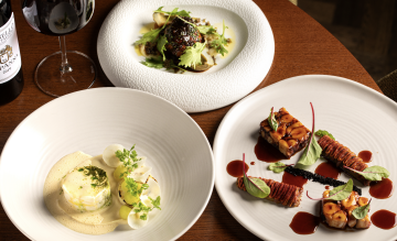 rape, reduzione di vino rosso, petto d‘anatra affumicato, Pecorino Toscano DOP