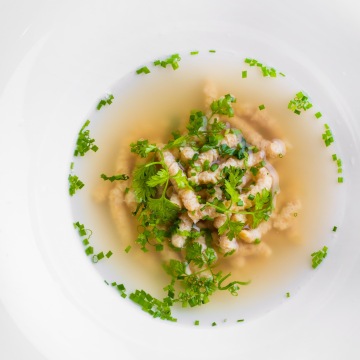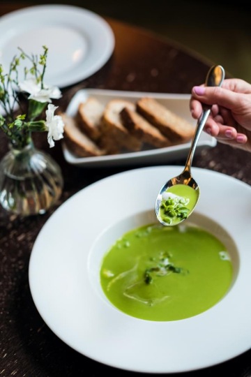 Nothing says Spring like young green peas. We have used them to create a creamy soup with mullet.