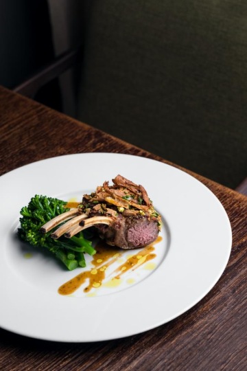 If you’re looking for meat, we have a confit of suckling pork belly with a creamy spinach mash, pickled Borettane and chard, or grilled lamb chops with pistachio-mint crust, baby broccoli and caper sauce.
