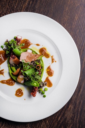 We’ve exchanged all of our main courses for new ones, including fresh fish and octopus. Order the poached cod fillet with tomato water and sea snails, or the grilled octopus with peas, black quinoa and veal demi-glace.