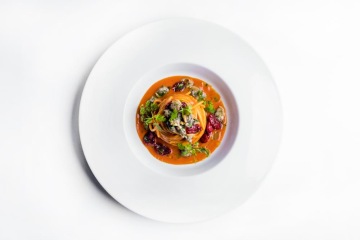 And let’s go to the pastas. Try the spaghetti with cockles and lightly smoked tomatoes, or strozzapreti with delicious crab meat.