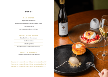 Service charge of 12, 5% will be added to the final bill for the groups of 8 and more guests.