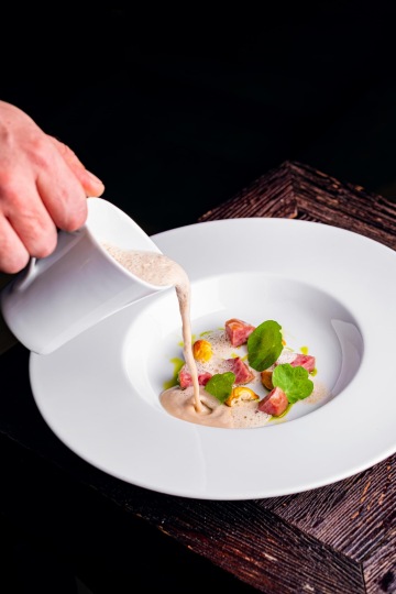 Krásný plating uvodí tyto hlavní chody. Ochutnejte srnčí hřbet s petrželovou strouhankou s černým kořenem, červenou cibulí Tropea a omáčkou z Tonka fazolí či grilovaná chobotnice s pečeným celerem, oříškovým máslem a pomerančovou omáčkou.