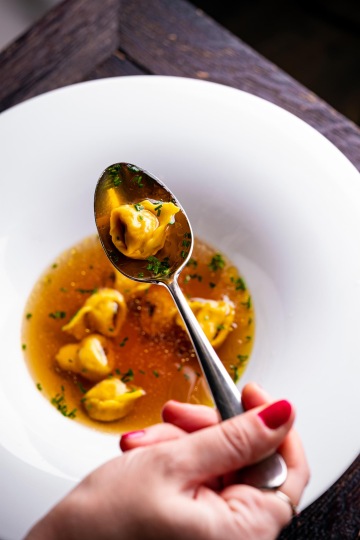 Z polévek vás zveme na consommé z hovězí oháňky s cappelletti. Polévka, která má opravdu sílu, protože vývar pomalu táhneme kolem 20 hodin. A podzimním hitem bude určitě krémová kaštanová polévka a cotechinem.