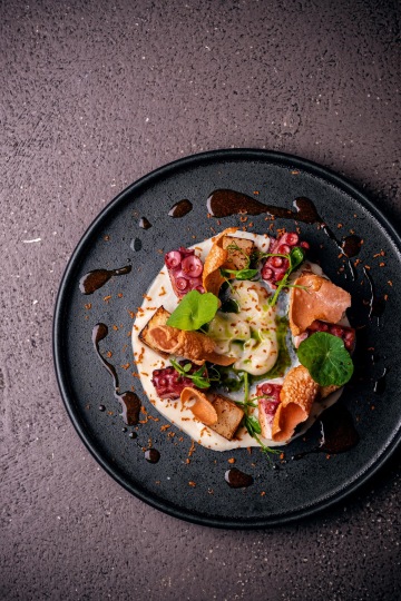 V kategorii předkrmů máme spoustu skvělých novinek. Ochutnejte vejce 62 °C se třemi variacemi květáku - bílý, žlutý, fialový a černý lanýž, který vám chod zastrouhá servis u stolu. Dále pak restované mušle sv. Jakuba s krémem z černé kapusty a sýr stracciatella a chipsy z černé kapuy. Náš hlavní dodavatel masa Domenico Celli pro nás produkuje skvělé Fiocco di Prosciutto. To pochází z vepřové kýty, používané k výrobě slavného Culatello di Zibello. Fiocco di Prosciutto vám servírujeme s čerstvým kozím sýrem , dýňovou zmrzlinou a chipsem z dýně.