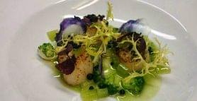Přijďte ochutnat Pečené mušle Sv. Jakuba s okurkou a sepiovým kaviárem nebo Pečenou tresku s tomatovou vodou a fenyklovým salátem.