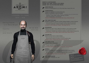 chcete zažít opravdu originálního Silvestra? Oslavu konce roku v duchu Jamese Bonda s mobilním kasinem, živou swingovou hudbou spolu s gastronomickými lahůdkami připravenými pro agenta 007 zažijete pouze v naší restauraci Aromi. Vychutnejte si sedmichodové menu pojmenované po bondovkách s těmi nejlepšími víny. A možná přijde i nový James Bond!