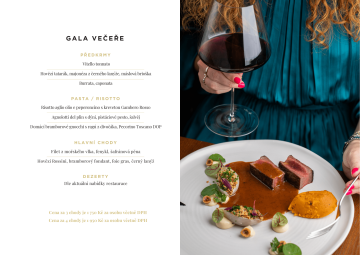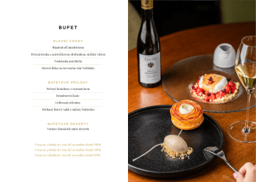 Pro skupiny osmi a více osob bude k finálnímu účtu připočítáno 12,5 % service charge. Uvedené ceny jsou v Kč včetně DPH.